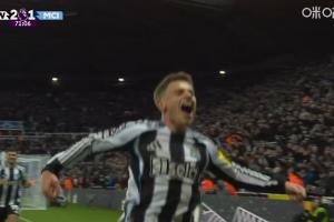 体育资讯11月23日讯 曼城vs纽卡第71分钟,曼城禁区乱战,巴恩斯破门!双响了!此时比分变为纽卡2-1!