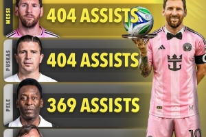 体育资讯11月24日讯 美职联比赛,梅西1射3助率领迈阿密4-0完胜辛辛那提,晋级东部决赛。至此,梅西已职业生涯助攻数已达404次。据score数据统计,梅西404次助攻已追平普斯卡什,两人并列世界足坛助攻榜榜首。